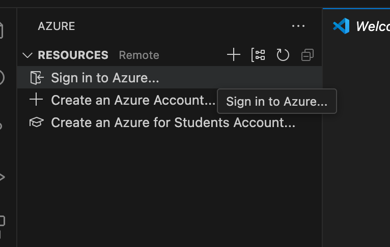 (Symbol mit vier Quadraten in der Seitenleiste). Suche nach "Azure Account" und installiere sie.Anmeldevorgang