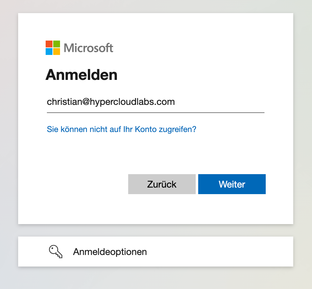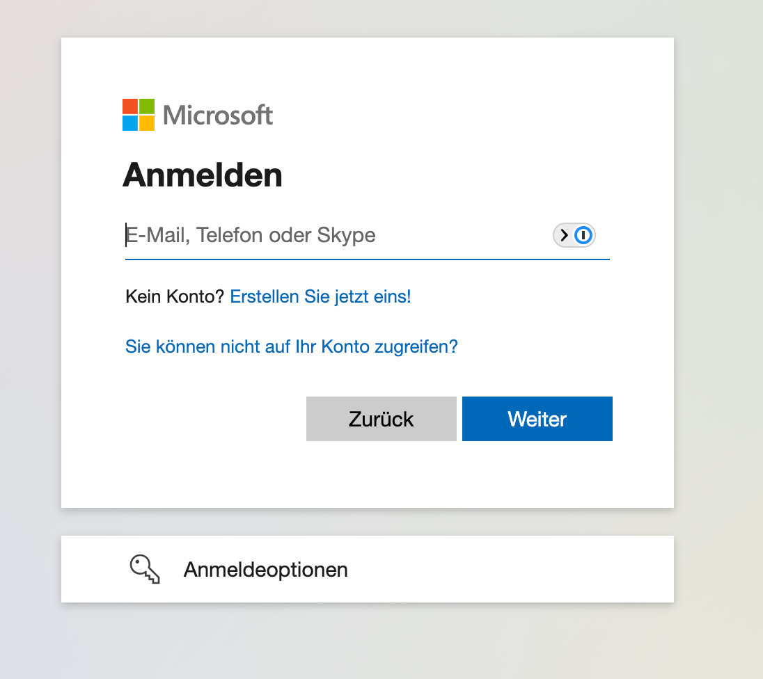 - Du wirst auf die Login-Seite von Microsoft weitergeleitet.