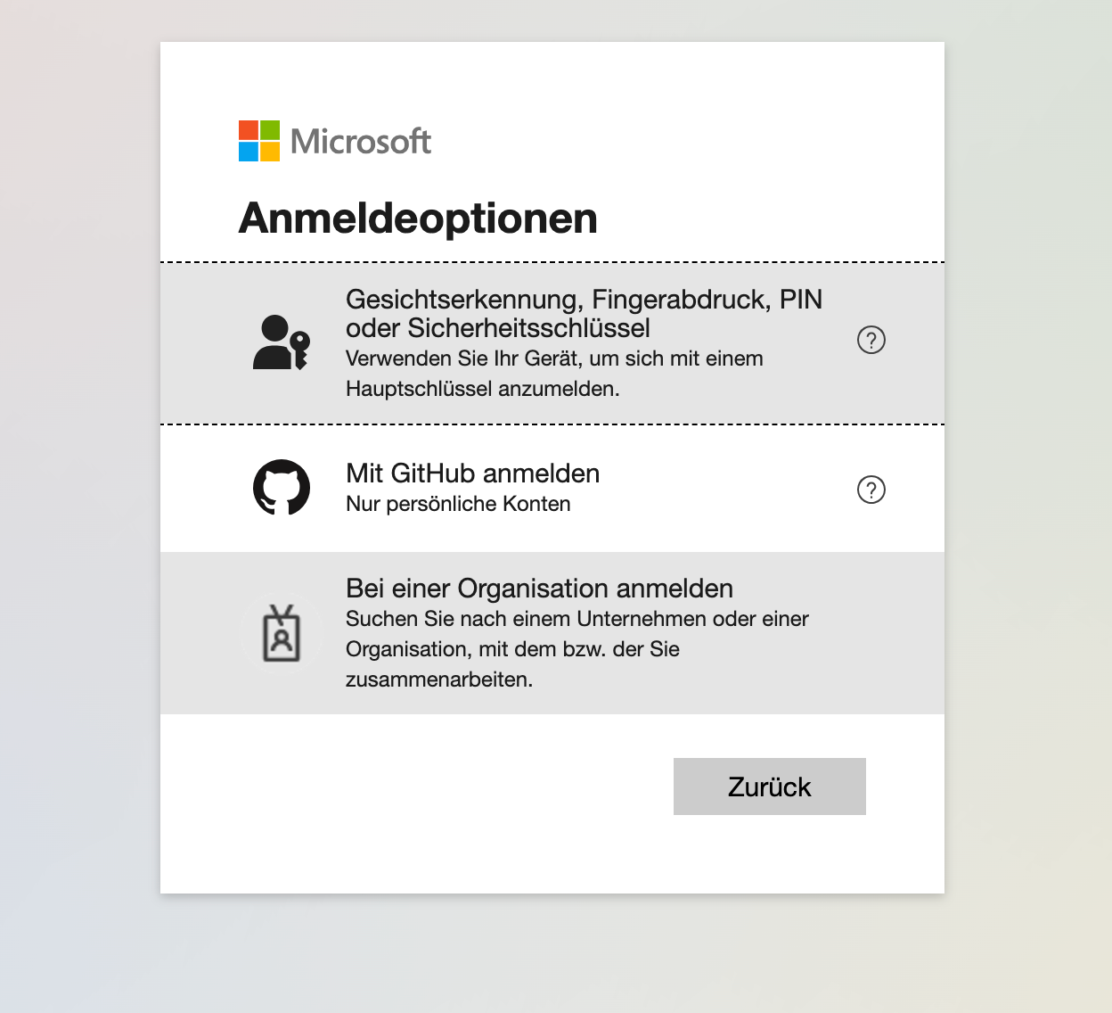 Anmeldeoptionen