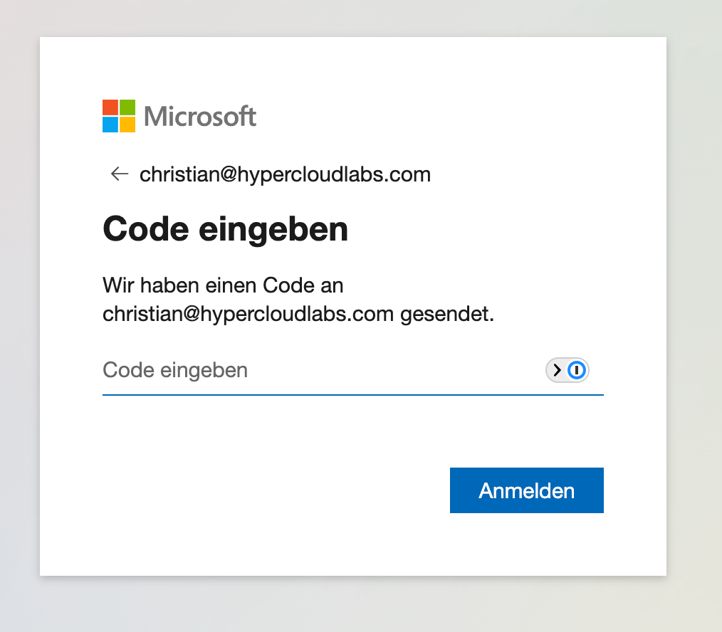 Den Login Code erhältst du an deine E-Mail-Adresse. - Gib den Code ein und klicke auf Anmelden.