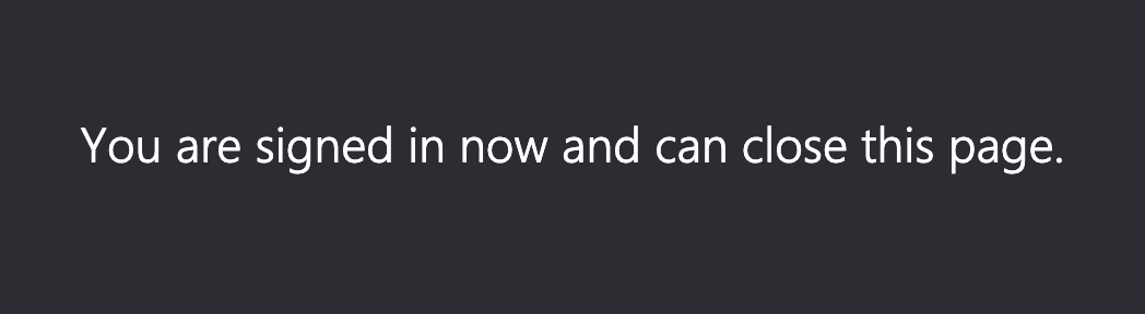 - Nach erfolgreicher Anmeldung erhältst du die Meldung: "You are signed in now and can close this page."