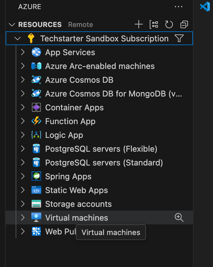 -Reiter siehst du jetzt das VerzeichnisTechstarter Sandbox Subscription